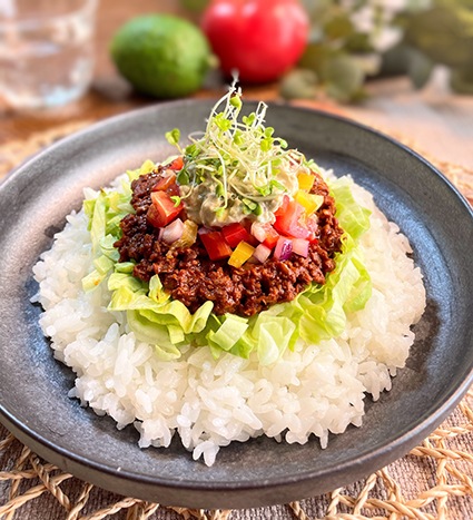 ・このままでもお召し上がりいただけますが、刻んだレタス、トマト、チーズをトッピングしますと、トルティーヤとともにタコスとして、或いは、ご飯と共にタコライスとしてより美味しくお召し上がりいただけます。